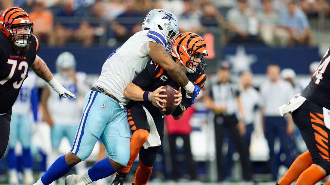ضد دالاس ، قال منسق هجوم بنغلس ، بريان كالاهان ، إن رعاة البقر قدموا الكثير من الأعمال المثيرة والمنعطفات التي تمكن فيها المهاجم الثاني من الحصول على كيس أو ضغط.
